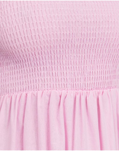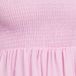 – Shirred bodice; square neckline