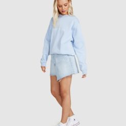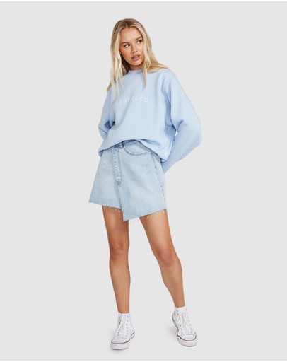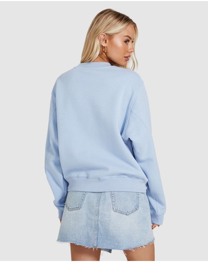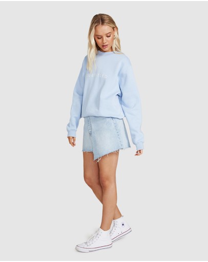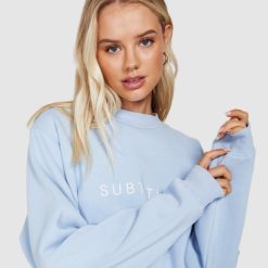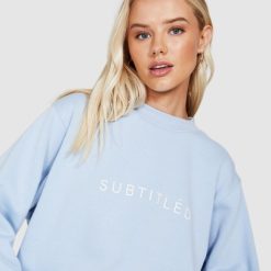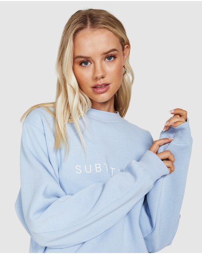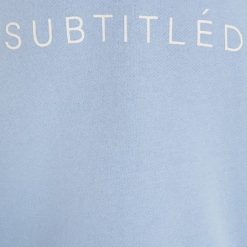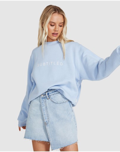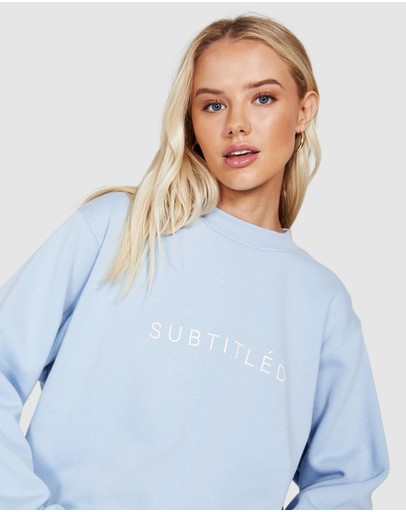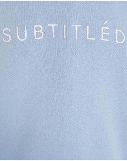 The State Fleece Crew Jumper by Subtitled is an oversized jumper which comes in a cornflower blue colourway. The style features a crew neck, loose fit and has the Subtitled logo printed across the chest.