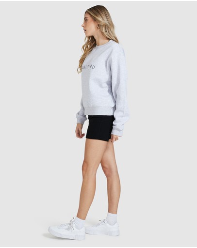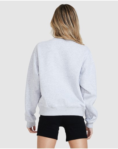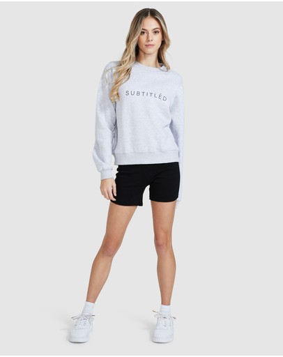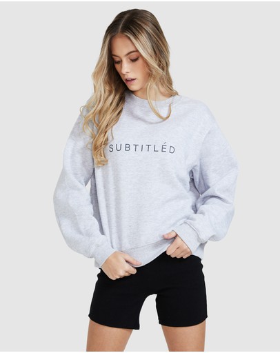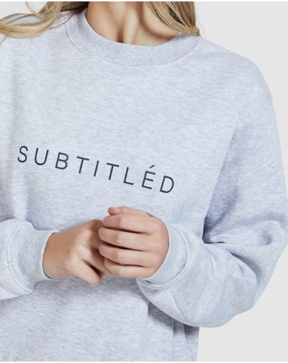 The State Fleece Jumper by Subtitled is a grey marle sweatshirt with logo printed across the front. This style features a relaxed fit and ribbed panel along the neck, cuffs and hemline.